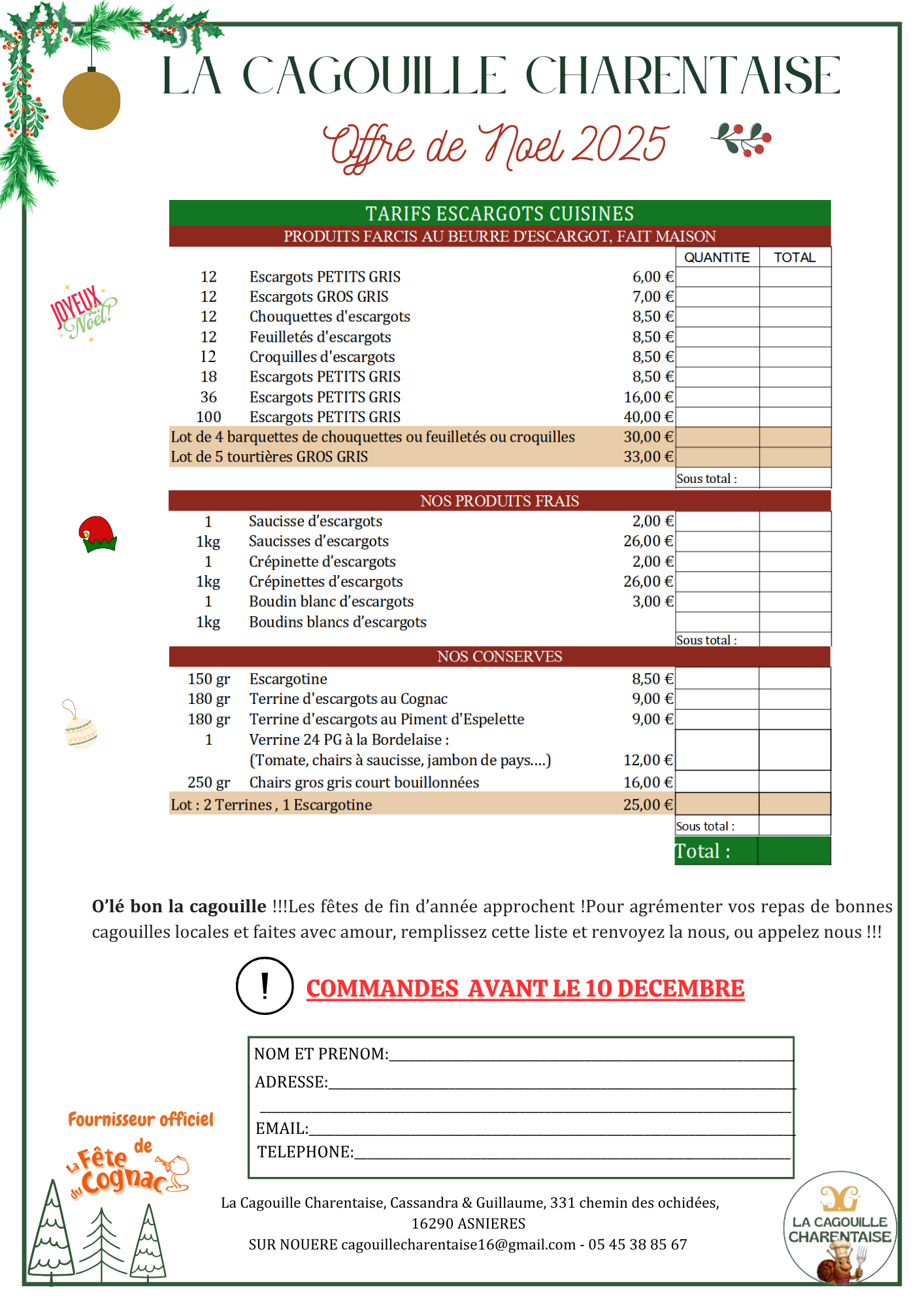 Passez vos commandes pour déguster nos cagouilles lors des fêtes !